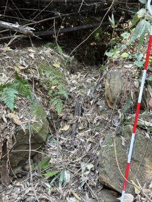 しかし、頑張った甲斐あって、水路跡?のような石組が出てきました。
