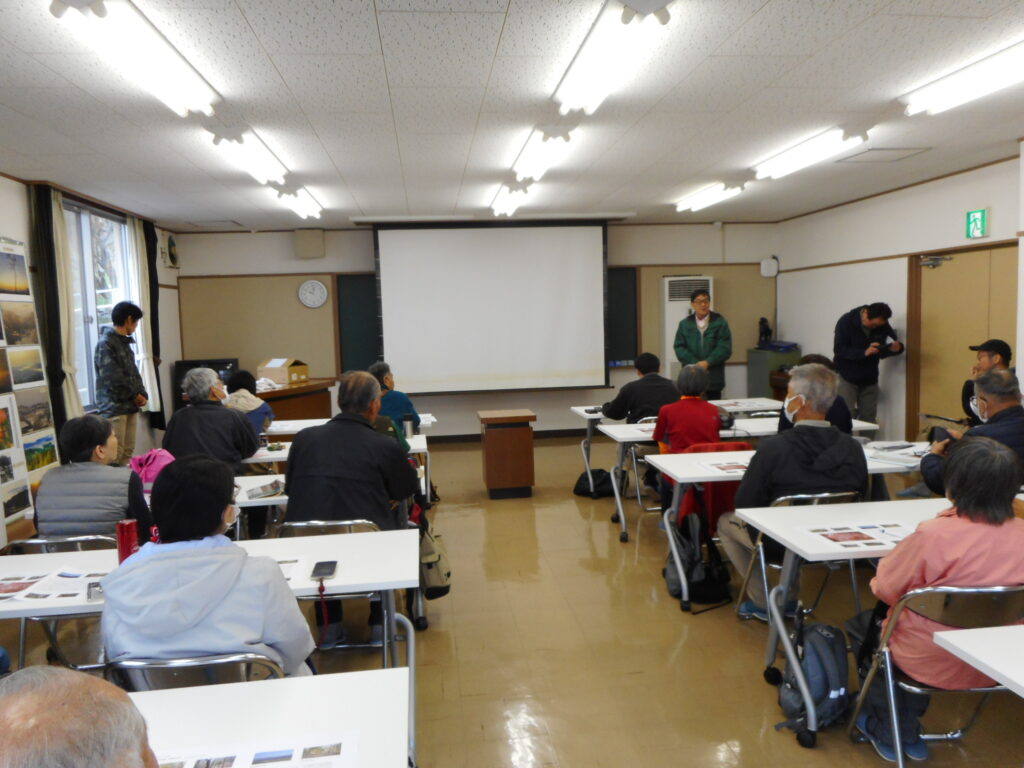 広瀬交流館の会議室で田口会長の挨拶と、杉本中世史部会長の井畑儀の現状についての簡単な説明を受け、現地の見学に。