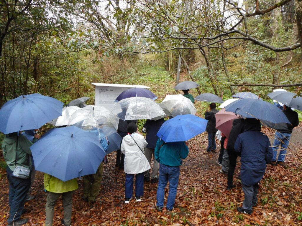 備陽史探訪の会では古代山城茨城推定地の調査と整備を進めおり、水門跡推定地の整備も進み徐々に環境が整ってきたことから現地を歩きながら、この調査を中心として進められている杉本中世史部会長に今までの成果や見所を案内してもらおうと考えていましたが、当日あいにくの大雨となり、急遽室内での座学と現地で新たに完成した茨城説明版の見学を行いました。